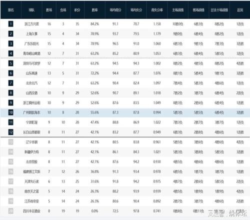 CBA积分榜:广厦、上海仍位居前二,深圳升至第5+四川队19连败